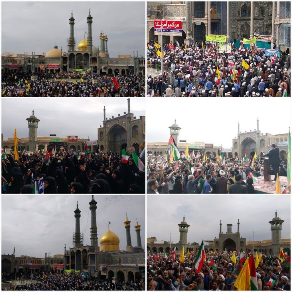 خروش زائران و مجاوران حرم حضرت معصومه سلام الله علیها علیه جنایات استکبار جهانی به ویژه رژیم صهیونیستی کودککش